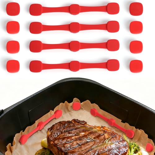 Romon 4 Set fibbie magnetiche in silicone, accessori per friggitrice ad aria, per carta pergamena, impedisce la fodera di carta di scorrimento, Rosso
