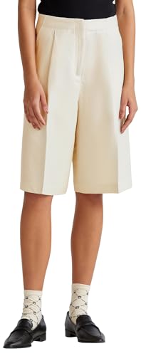 Bermuda a vita alta in misto lino. Cinturino in vita pulito con pinces davanti e tasche alla francese, pinces dietro e tasche a filetto. Chiusura frontale con cerniera e bottone. Stiratura centrale .,64%LYOCELL 36%LINO